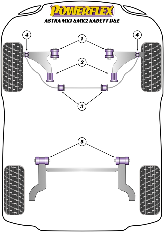 Vauxhall / Opel Astra MK1 - Kadett D (1980 - 1985)Front Roll Bar Mounting Bolt BushBush Size: OEM Part Numbers: Quantity: 2 Bush(es) / Required per Car = 2 Bush(es)Road Series Part Number = PFF80-308Black Series Part Number = PFF80-308BLKRoad EAN Reference Number: 5055676509734, Black EAN Reference Number: 5055676523402Diagram Reference = 4NOTES:-See above pictures and car diagrams as applicable.Road Series - For Road and fast Road use. Improve your cars’ road holding and chassis performance by controlling the amount of unwanted flex in the suspension. They offer Prolonged tyre life, Improved performance, Increased safety, Greater cost-effectiveness.Black Series- For Track and Motorsport use. Manufactured using Black 95 Shore A compound to provide maximum control of chassis geometry. They are designed for the Track, ready to Race and are engineered to be the best.Fitting Instructions: Road Series N/A - Black Series N/A