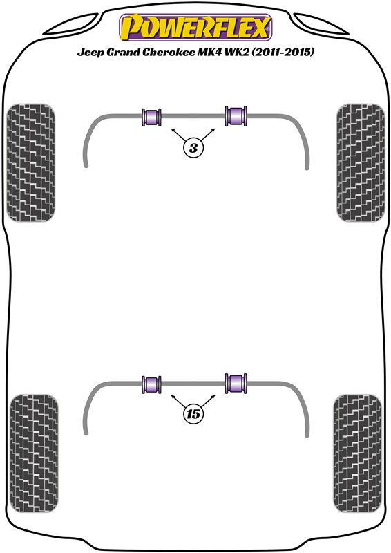 Jeep Grand Cherokee Mk4 WK2 (2011 - 2015)Rear Anti Roll Bar Bush 25mmFor vehicles fitted with the SDX High-Performance Suspension option Bush Size: 25mmOEM Part Numbers: Quantity: 2 Bush(es) / Required per Car = 2 Bush(es)Road Series Part Number = PFR28-215-25Road EAN Reference Number: 5055676541741Diagram Reference = 15NOTES:-See above pictures and car diagrams as applicable.Road Series - For Road and fast Road use. Improve your cars’ road holding and chassis performance by controlling the amount of unwanted flex in the suspension. They offer Prolonged tyre life, Improved performance, Increased safety, Greater cost-effectiveness.Fitting Instructions: Road Series N/A